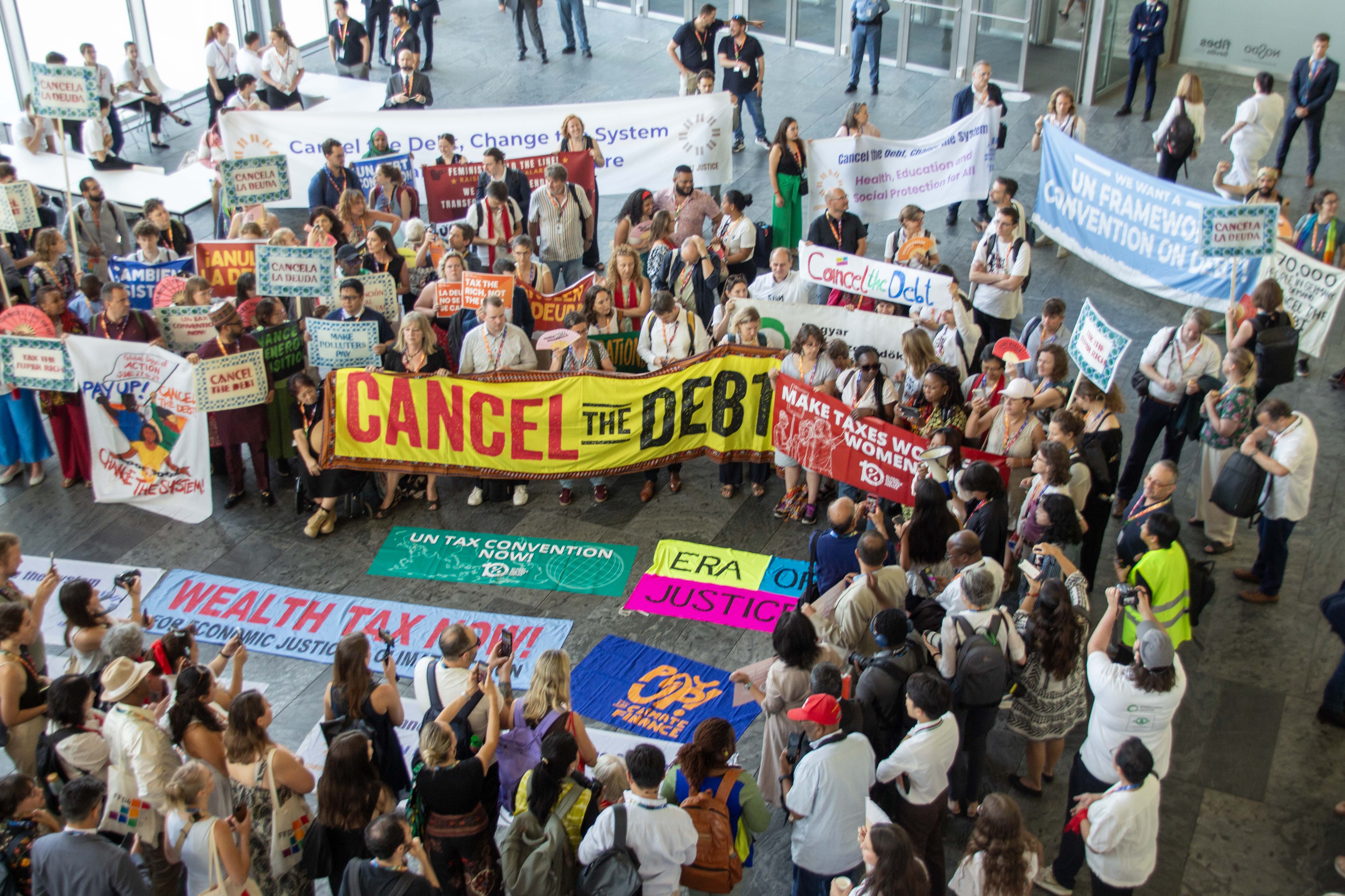 Civil society activists at the fourth Financing for Development Conference in Sevilla